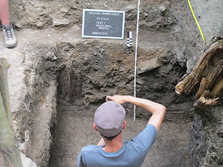 The archaeological survey was undertaken with the collaboration of Dan Sivilich and BRAVO (Battlefield Restoration & Archaeological Volunteer Organization), of New Jersey. Sivilich has a close family connection to the region’s mining heritage. Crewmembers worked in a wooded area with heavy primary growth. An analysis of the artifacts identified a variety of ordnance from the period situated in a cluster near the road. This spot marked the location where the initial confrontation occurred below a gum tree. No longer standing, the community later described this witness site as “the Massacre tree”.